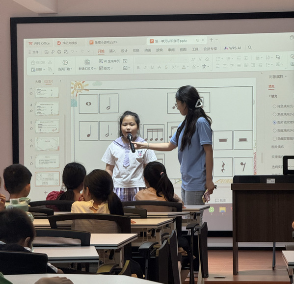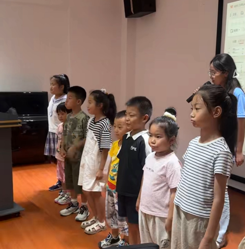 在合唱排练课正式开始前,老师特别设置了“歌曲展示”环节,邀请孩子们主动上台演唱自己熟悉的曲目。这一环节不仅为孩子们提供了展现自我的平台,更在轻松的氛围中拉近了彼此距离,为后续课程的开展奠定了良好基础。