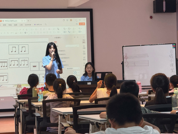 音乐是心灵的翅膀,而童声是最纯净的乐章。8月19日,“众音创益”实践团走进“悦享东方”社区,为孩子们带来了一场充满欢声笑语的合唱排练课。清脆的歌声如清泉流淌,为夏日的午后注入了灵动的活力。