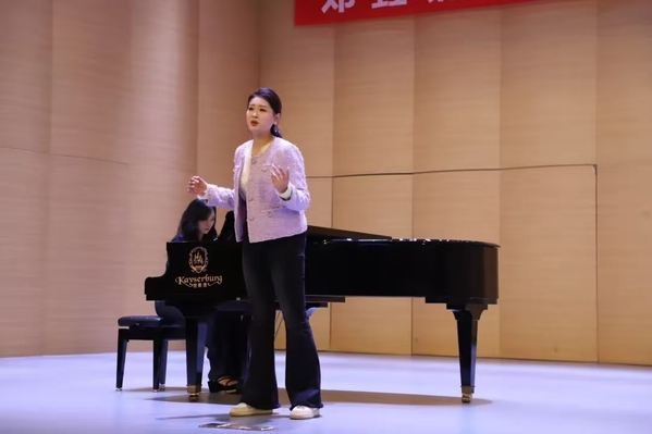 由阚若瑾老师演唱、张佳慧老师艺术指导的《诀别书》,邓垚老师通过讲解和声编配、色彩转换、调式调性变化以及创作思维,突出作品的古典韵味与情感张力,演示了“声乐风格与钢琴伴奏的适配性创作”,另外两组员工分别弹奏演唱了《琵琶行》 《再唱沂蒙山》,邓垚老师现场指导演唱者与伴奏的节奏配合、情感联动,直观展现了“即兴创作与艺术表达”。
