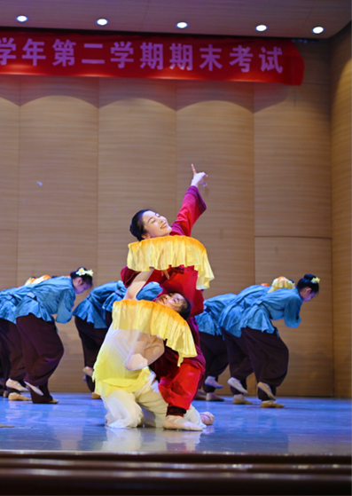 提起推免这件事,这让我不由想起自己走过的路。大一时的我懵懵懂懂,心底总藏着几分自卑。对我们舞蹈生来说,身形体态是基础,软开舞感是内核。而我在班里本就属于中等偏下的“海拔”,再加上以第31名的成绩考入专业,自然身体不如别人柔软,舞感也来的慢些。但我自始至终依然坚信着,起点低不是限制,而是生活特意为我留白的画布——让我用脚步蘸着时间,一笔一笔,画出只属于我的海拔。于是我们开始跟自己较劲,细到指尖的弧度,微到气息的转换,一个动作反复琢磨,一遍不行就十遍。练功房的镜子见过我最狼狈的样子,也记录着我一点一滴的变化。就这样一步一步,脚印虽深,却越走越稳。