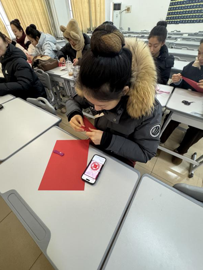 活动尾声,团员们纷纷展示自己的作品,互相分享创作心得,还将剪好的窗花赠予同窗好友,用这份亲手制作的礼物传递温暖与年味。
