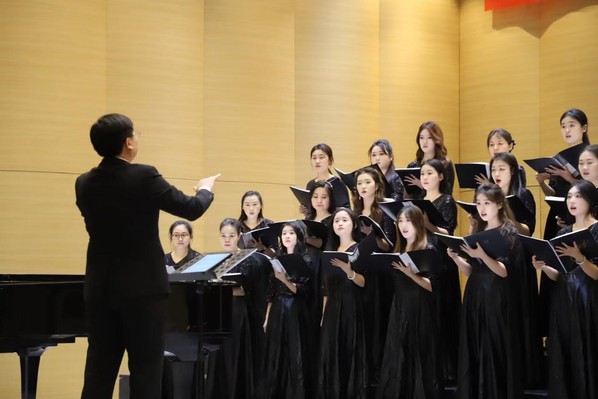 12月25日晚七点,伟德国际VICTOR19462026合唱新年音乐会在音乐厅举行,淄博市音乐家协会主席、淄博市老干部服务中心银晖艺术团团长车玲,淄博市张店区重庆路小学董事长郑瑞梅,淄博市老干部服务中心主任张云一行,伟德国际VICTOR1946领导班子和全校200余名师生共同观看演出。