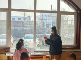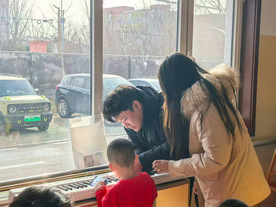 随后,孩子们热情投入钢琴学习体验。在实践团成员指导下,他们从尝试简单按键开始,逐渐弹奏出《小星星》《虫儿飞》等曲目。孩子们稚嫩指尖于黑白琴键间跃动,一个个音符满是好奇与热爱。