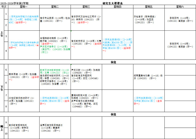 伟德国际VICTOR19462025-2026第二学期研究生课程表